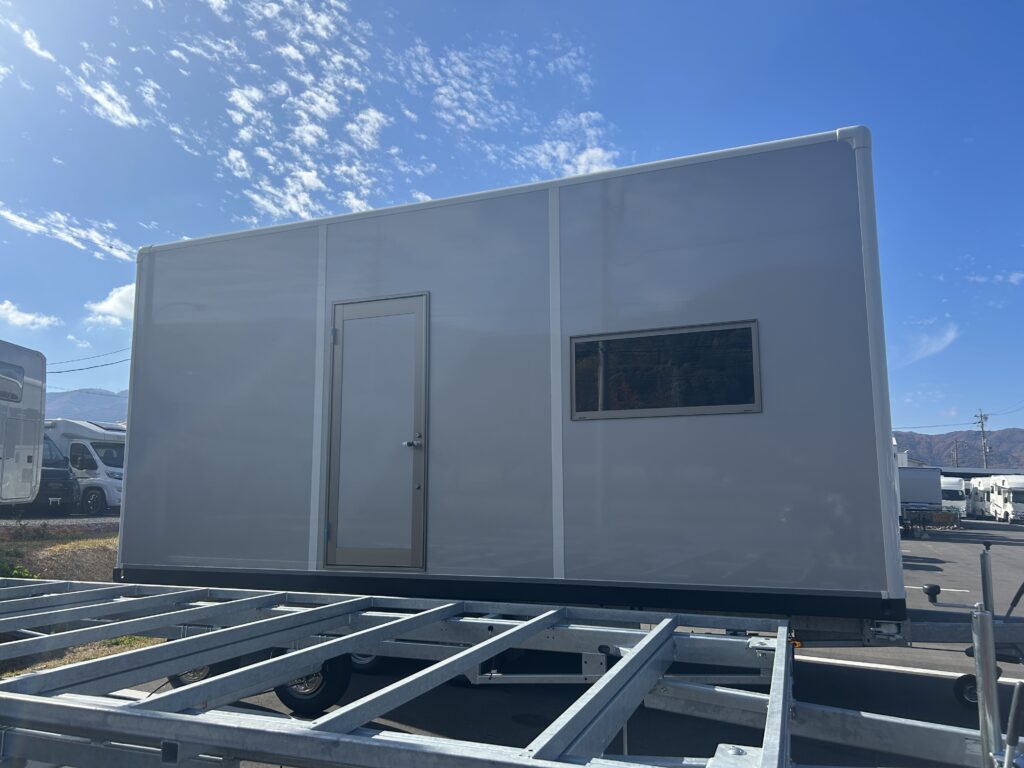 LT-ONEは、トラック冷凍車の荷台に使われる“発泡断熱材+アルミ”のサンドイッチパネルを全面に採用した、日本最軽量級のトレーラーハウスです。